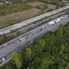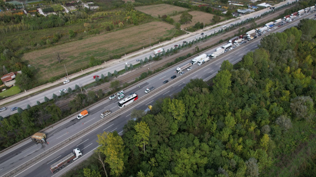 Anadolu Otoyolu Sakarya geçişinde kontrolden çıkan kamyonet yan yattı. Otoyolun İstanbul istikametinde uzun araç kuyrukları oluşurken, olay yeri havadan görüntülendi.