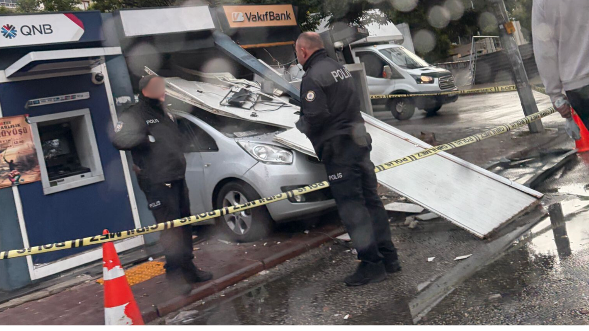 Kaza, sabah saatlerinde Altındağ ilçesi Güneşevler Mahallesi'nde meydana geldi. Yağmur nedeniyle kayganlaşan yolda sürücüsünün kontrolünü kaybettiği otomobil, yol kenarındaki banka ATM'sinin içine girdi.