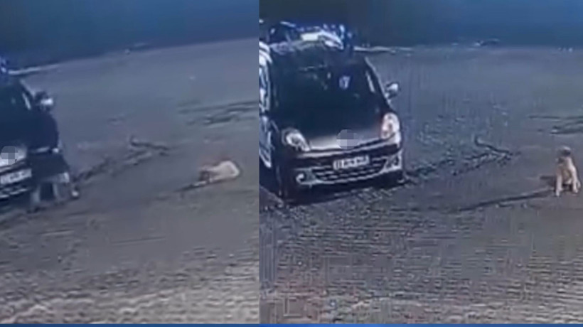 Olay anı ise güvenlik kamerasına saniye saniye yansıdı. Görüntülerde araçla gelen K.A.'ya doğru köpeğin gelmesi ve daha sonra yere yatması yer aldı. Bir süre sonra camiden su doldurup aracına gelen sürücünün köpeği ezerek bölgeden uzaklaştığı da görüntülere yansıdı.