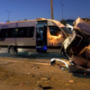 SERVİSE VE HAFRİYAT KAMYONUNA ÇARPTI