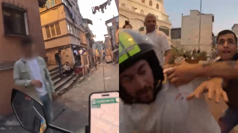 Turist sokakta bulunan bir kişi tarafından durduruldu. İspanyol turiste, 'Yanlış anlama niye çekiyorsun' diye çıkıştı. İngilizce 'Ne' diye cevap veren turist daha sonra motosikltiyle uzaklaşmaya başladı. Turistin gittiğini gören bir başka kişi ise arkasından su şişesi fırlattı. Turist sokakta ilerlediği sırada motosiklete binen 1 şüpheli ise turisti takip etmeye başladı.