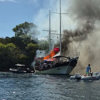 Fethiye'de tekne alev topuna döndü: Ekipler olay yerinde