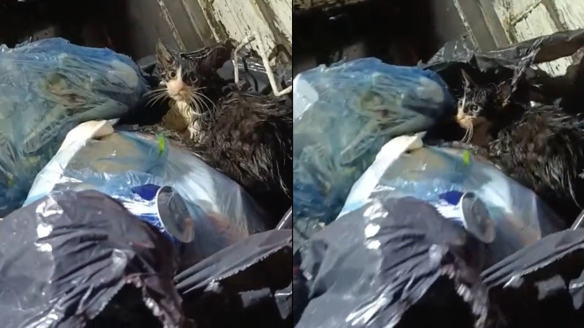 Ekipler, çöp konteynerini araca boşalttığı sırada içeriden sesler geldiğini fark etti. Yapılan kontrolde ağzı bağlanmış bir poşetin içerisinde kedi olduğu görüldü.