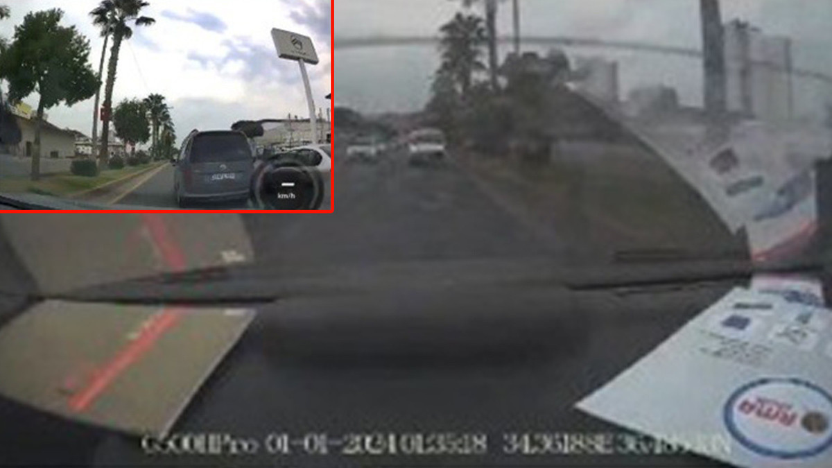 Öte yandan, sürücünün tehlikeli sürüş anları araç içi kamerasına yansıdı.