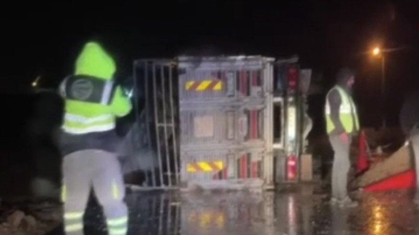 Ankara’nın Polatlı ilçesi ile İğciler yolu üzerinde küçükbaş hayvan yüklü bir kamyon kontrolden çıkarak devrildi. Henüz kimliği öğrenilemeyen sürücünün idaresindeki 06 BCD 630 plakalı kamyonun, etkili yağış nedeniyle kayganlaşan yolda hakimiyetini kaybettiği belirtildi.