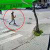 Şüphelinin, minyatür komando heykeliyle yürüdüğü anlar bir işletmenin güvenlik kamerasına yansıdı.