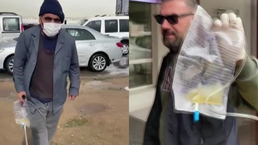 Sonda tüpüne meyve suyu koyup dilencilik yapan şahıs yakalandı