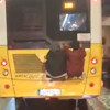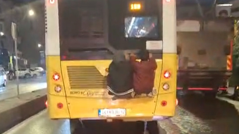 Trafikte kendi can güvenliklerini tehlikeye atan çocuklar, aynı zamanda trafikteki diğer sürücüler için de risk oluşturdu. Çocukların otobüse tutunarak ilerlediği anlar, arkadan gelen motosiklet sürücüsü tarafından görüntülendi. Otobüsün durmasıyla çocuklar koşarak uzaklaştı.