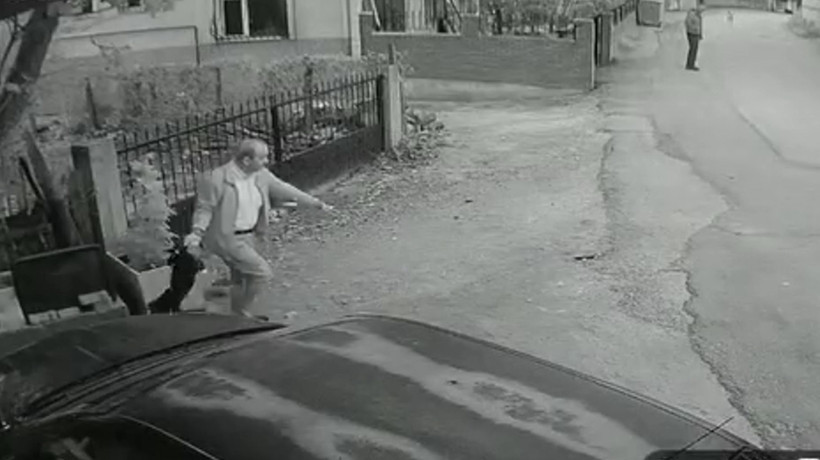 O anlar bir evin güvenlik kamerasına yansıdı. Görüntülerde köpeğin yere fırlatıldıktan sonra acı çığlıkları ve çevredeki vatandaşların E.B.'ye gösterdiği tepki yer aldı.