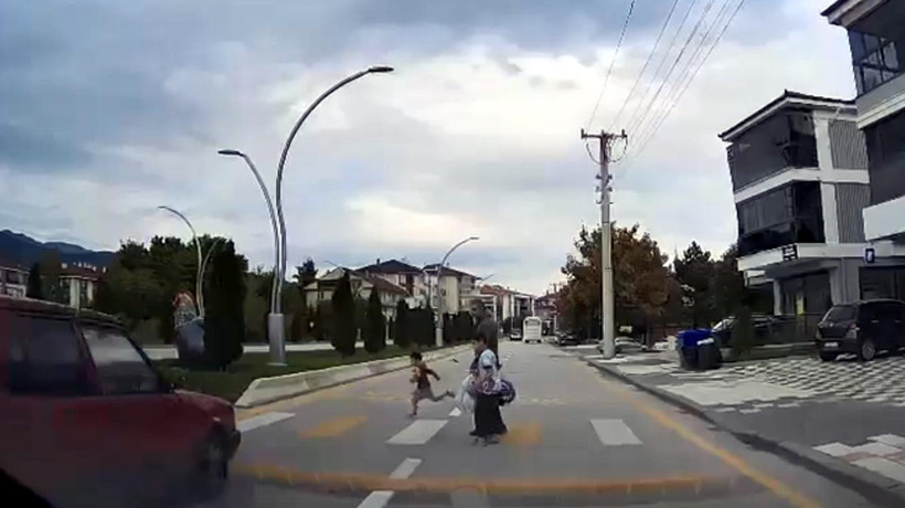 Bolu’da babası ve ağabeyiyle yaya geçidinden yolun karşısına geçen 4 yaşındaki çocuğa otomobil çarptı. Yaralanan çocuk hastaneye kaldırılırken olay anı başka bir aracın içerisindeki kameraya yansıdı.