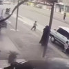 Kaza anı bir iş yerinin güvenlik kamerasına yansıdı.