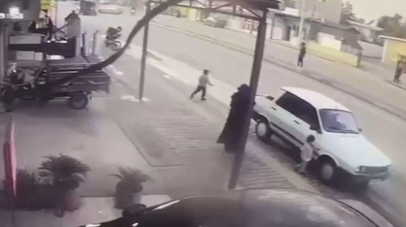 Adana'da koşarak yolun karşısına geçmeye çalışırken kamyonetin çarptığı Batuhan Şahanalan (5), ağır yaralandı. Kaza anı güvenlik kamerasına yansıdı.