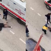 Yolun ortasında yatan kadın, sinir krizi geçirdi