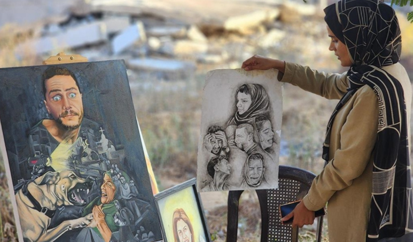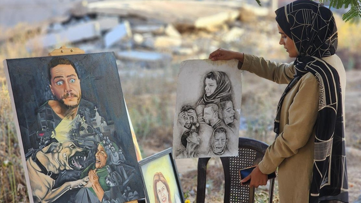 Filistinli ressam, sanatıyla Gazze'deki acı ve felaketi dünyaya duyurmaya çalışıyor