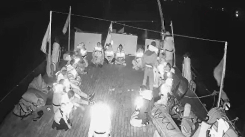 İsrail Donanması, Küresel Sumud Filosu'nu telsizle uyararak, "Geminizi durduracak ve el koyma işlemi başlatacağız" ifadelerini kullandı. Küresel Sumud Filosu Komite Üyesi Thiago Avila, cevap olarak, "İşlediğiniz sayısız savaş suçuna bir yenisini daha eklememenizi talep ediyoruz" dedi. Filonun denizin ortasında karanlıkta beklediği anlara ait görüntü servis edildi.