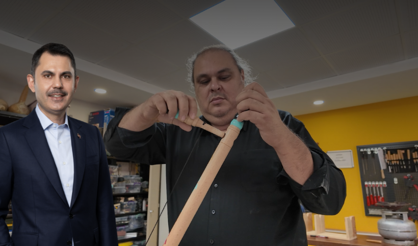 Bakan Kurum görüntüleri paylaştı: Atık malzemeler onun ellerinde melodiye dönüşüyor