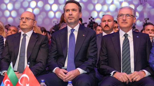 İzmir'de bir otelde Türkiye Rüzgar Enerjisi Kongresi (TÜREK 2025) kapsamında Türkiye-Azerbaycan 4. Enerji Forumu düzenlendi. Foruma; Enerji ve Tabii Kaynaklar Bakanı Alparslan Bayraktar (ortada), Azerbaycan Enerji Bakanı Perviz Şahbazov (solda) ile Azerbaycan Cumhurbaşkanının İklim Konularından Sorumlu Temsilcisi ve COP29 Başkanı Muhtar Babayev (sağda) katıldı.