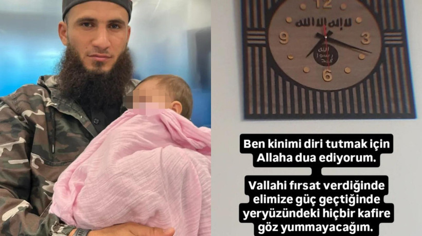 Teröristin bir başka paylaşımında ise üzerinde terör örgütü IŞİD'in bayrağının olduğu duvar saatini paylaştığı görüldü. Paylaşımda "Ben kinimi diri tutmak için Allah'a dua ediyorum. Vallahi fırsat verdiğinde elimize güç geçtiğinde yeryüzündeki hiç bir kafire göz yummayacağım" ifadelerini kullandığı görüldü.