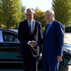 Heyetlerini birbirine takdim eden Erdoğan ve Merz, merdivenlerde Türkiye ve Almanya bayrakları önünde gazetecilere poz verdi.