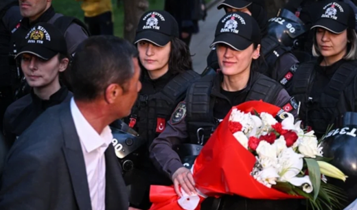 POLİSE ÇİÇEK VERDİLER