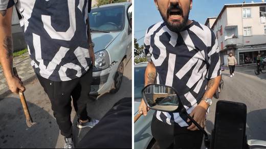 İstanbul trafiğinde keserli saldırı anı kamerada