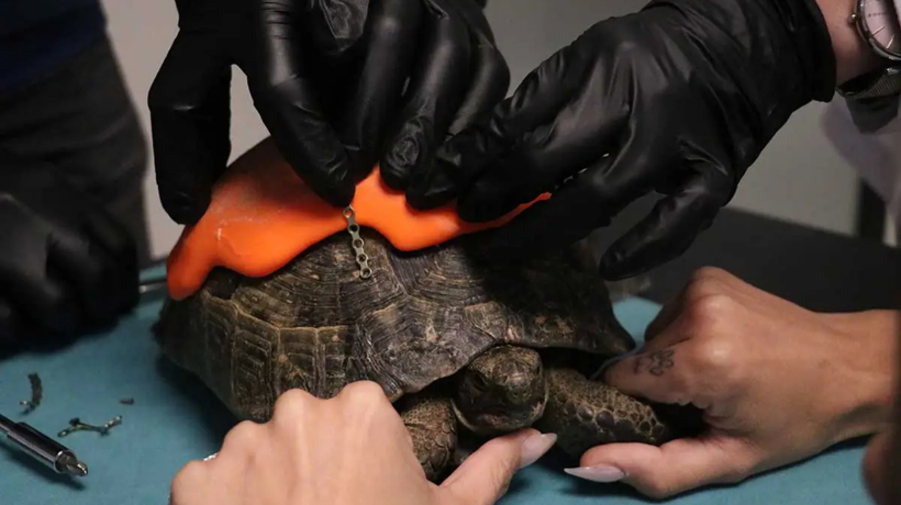 Ankara’da yol kenarında kabuğu kırılmış halde bulunan kara kaplumbağası 'Roka'ya 3 boyutlu protez takıldı.