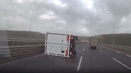 İstanbul’da etkili olan kuvvetli rüzgar ve lodos, trafikte özellikle ağır tonajlı araç sürücülerine zor anlar yaşattı. Zaman zaman saatte 70 ila 80 kilometre hıza ulaşan şiddetli rüzgâr nedeniyle Kuzey Marmara Otoyolu’nu kullanarak Anadolu Yakası’na geçmeye çalışan tır sürücüleri büyük dikkatle ilerlemek zorunda kaldı. Trafikteki 2 tır ve 1 kamyonet devrildi.