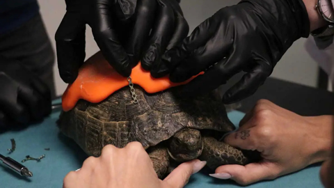 Kabuğu kırılan kaplumbağaya protez takıldı