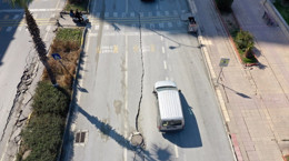 Kahramanmaraş merkezli meydana gelen depremlerden etkilenen İskenderun ilçesindeki sahil bandında Atatürk Bulvarı'ndaki yarıklar dron ile havadan görüntülendi. Yaklaşık 1 kilometrelik yarık bulvarın bir şeridini neredeyse ikiye böldü.