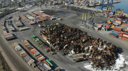 Türkiye Kahramanmaraş merkezli meydana gelen deprem felaketlerinin yaralarını sarmaya çalışırken Türkiye’nin dördüncü büyük limanı olan İskenderun Limanı’nda devrilen konteynerlerden başlayan yangın 90. saatte güçlükle söndürülmüştü. Limandaki çalışmalar havadan görüntülendi.