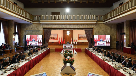 Cumhurbaşkanlığı Külliyesi'nde gerçekleşecek görüşmede Terörsüz Türkiye sürecindeki son gelişmeler ele alınacak. PKK'nın Türkiye'den çekilme kararı ve silah bırakma sürecinin ardından atılacak hukuki adımların da ele gündeme gelmesi bekleniyor.