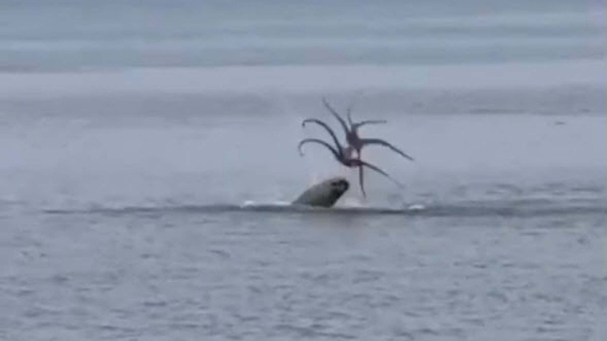 Çeşme açıklarında, nesli tükenmekte olan bir tür olan Akdeniz foku avlanırken görüntülendi. Akdeniz fokunun avladığı ahtapotla suda verdiği mücadele çevredekiler tarafından görüntülendi.