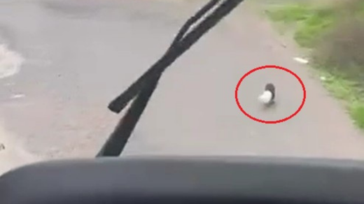 O anları cep telefonu kamerasıyla kaydeden şoför, köpeği sevdikten sonra yoluna devam etti.
