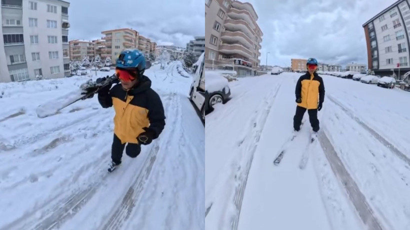 Kayak yaparken kendini kayda da alan vatandaş, karla kaplanan yollarda rahatlıkla ilerlediği anları sosyal medyada paylaştı. Görüntüler kısa sürede ilgi gördü.