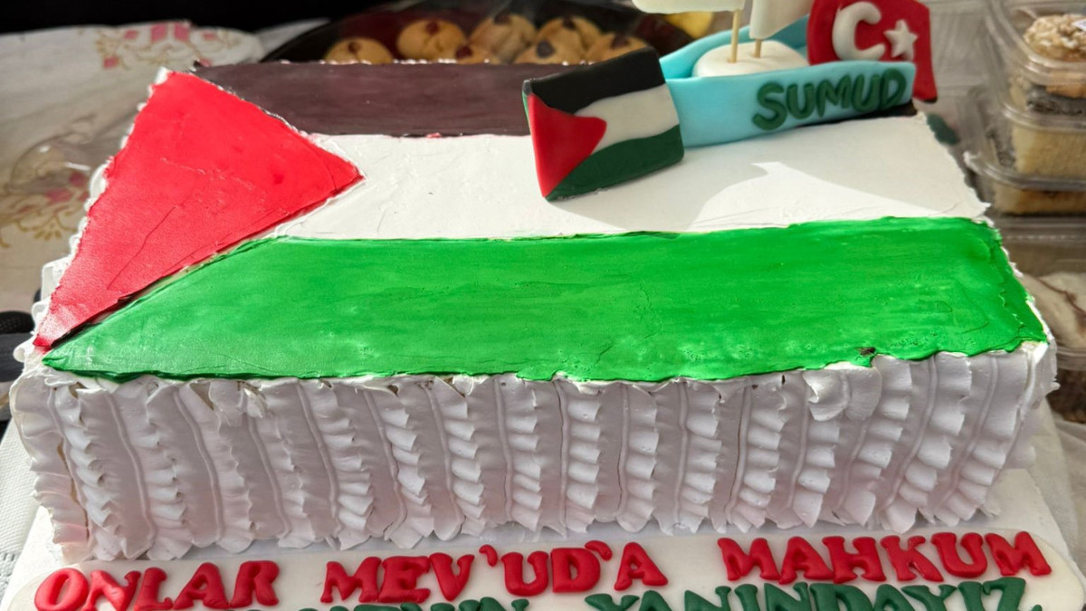 Bartın'da Gazze'ye destek için gerçekleştirilen etkinlikte Filistin ve Sumud Filosu temalı yaş pasta 6 bin TL'ye satıldı. Pasta daha sonra Kur'an kursu öğrencilerine hediye edildi.