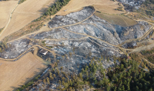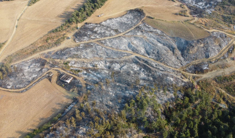 Gelibolu'da çıkan orman yangınının zarar verdiği alan dron ile görüntülendi