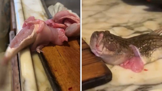 Pişirilmek üzere temizlenen ve iç organları alınan balık, mutfak tezgahının üzerinde kuyruğunu sallamaya başladı. Soslanıp yemek olması için pişirilmeye hazırlanan balık kas refleksleriyle dakikalarca çırpınıp ve olduğu yerde dönerken, gördüklerine inanamayan vatandaş balığın o anlarını cep telefonuyla kayıt altına aldı.