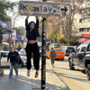 Gençlerin tabelaya asılarak fotoğraf çektikleri, yoldan geçen birçok kişinin de akım için poz verdiği görüldü.