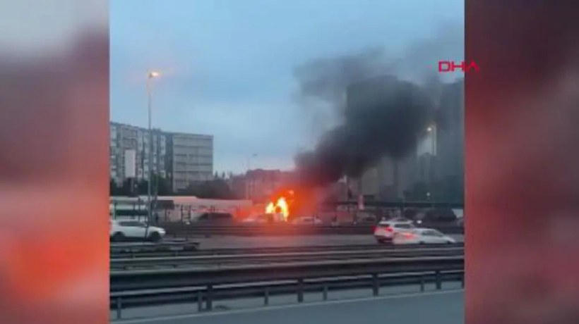 Cevizlibağ'da iş makinesi alev alev yanıyor