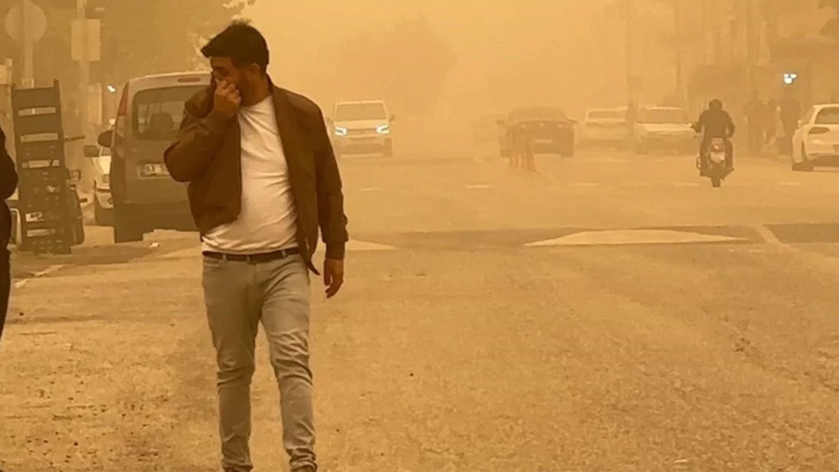 Suriye üzerinden gelen toz bulutu Şanlıurfa merkez ve sınır ilçesi Ceylanpınar'da gökyüzünü kapladı. Hayatı olumsuz etkileyen toz bulutundan korunmak için bazı vatandaşlar maske ile gezdi.